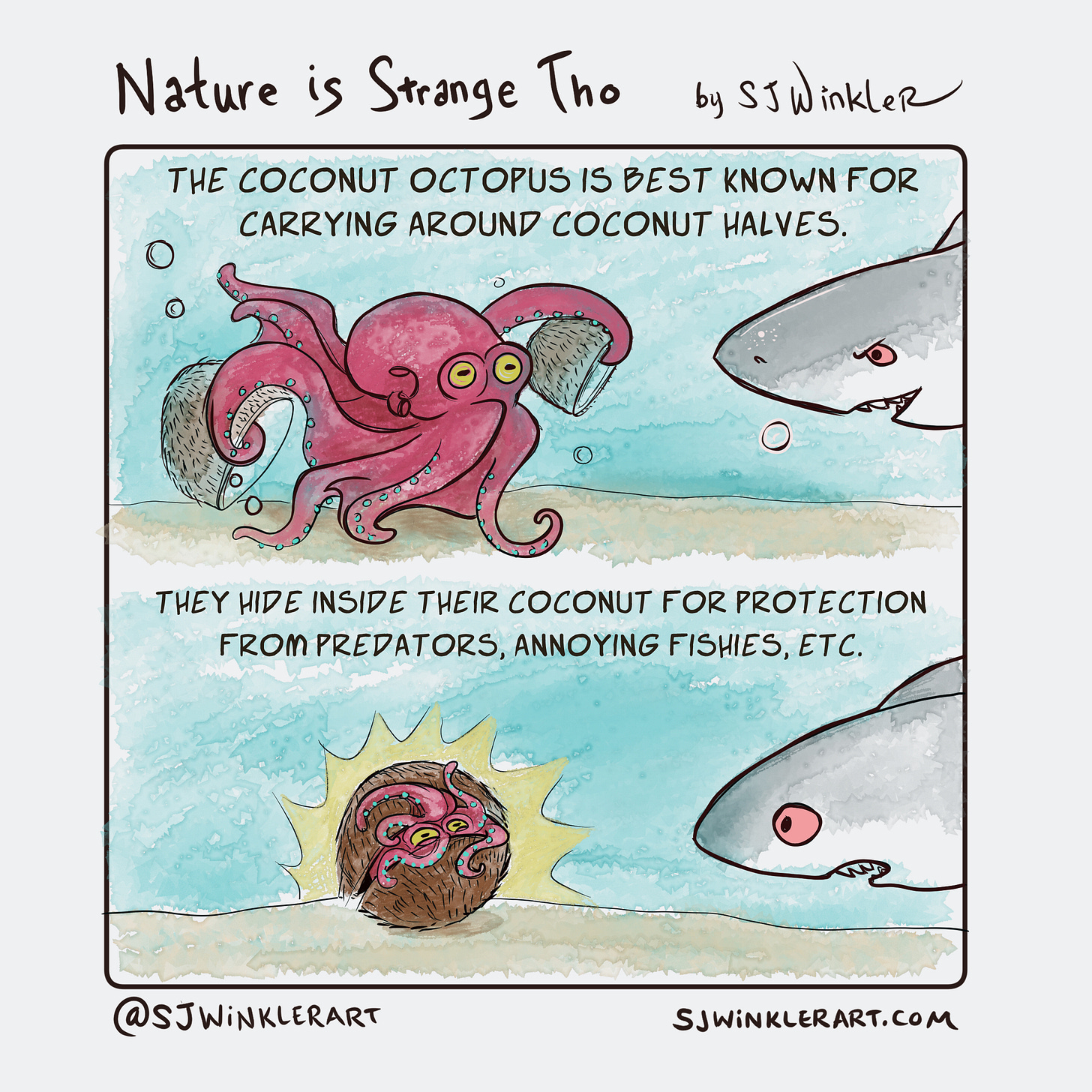 Comics for Big Apples (Gr3 - 5)Coconut Octopus🪲NATURE IS STRANGE THO by SJ WinklerSJ WinklerApr 29, 20242Share🪲 Can you think of another animal that carries something that it can hide inside?🪲🪲 Want to see how SJ painted this? Click below!Thanks for reading Core Toons! Subscribe for free to receive new posts and support our work.SubscribePreviousNext