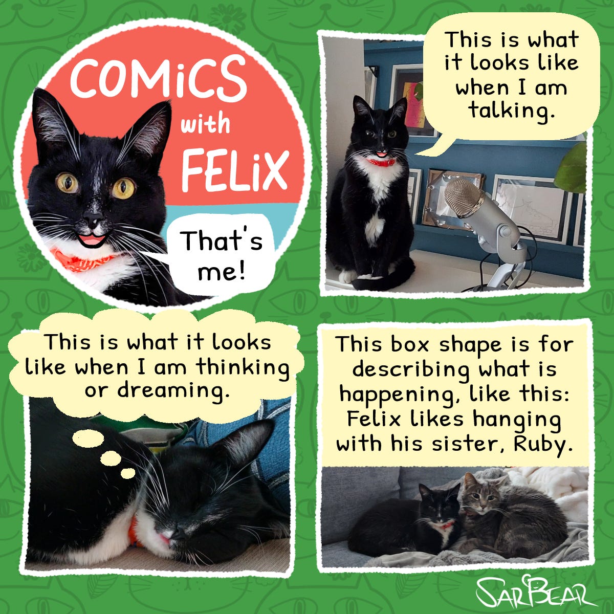 🐈⬛ What do you notice about the balloon where Felix is talking? Where does the tail of the balloon point?